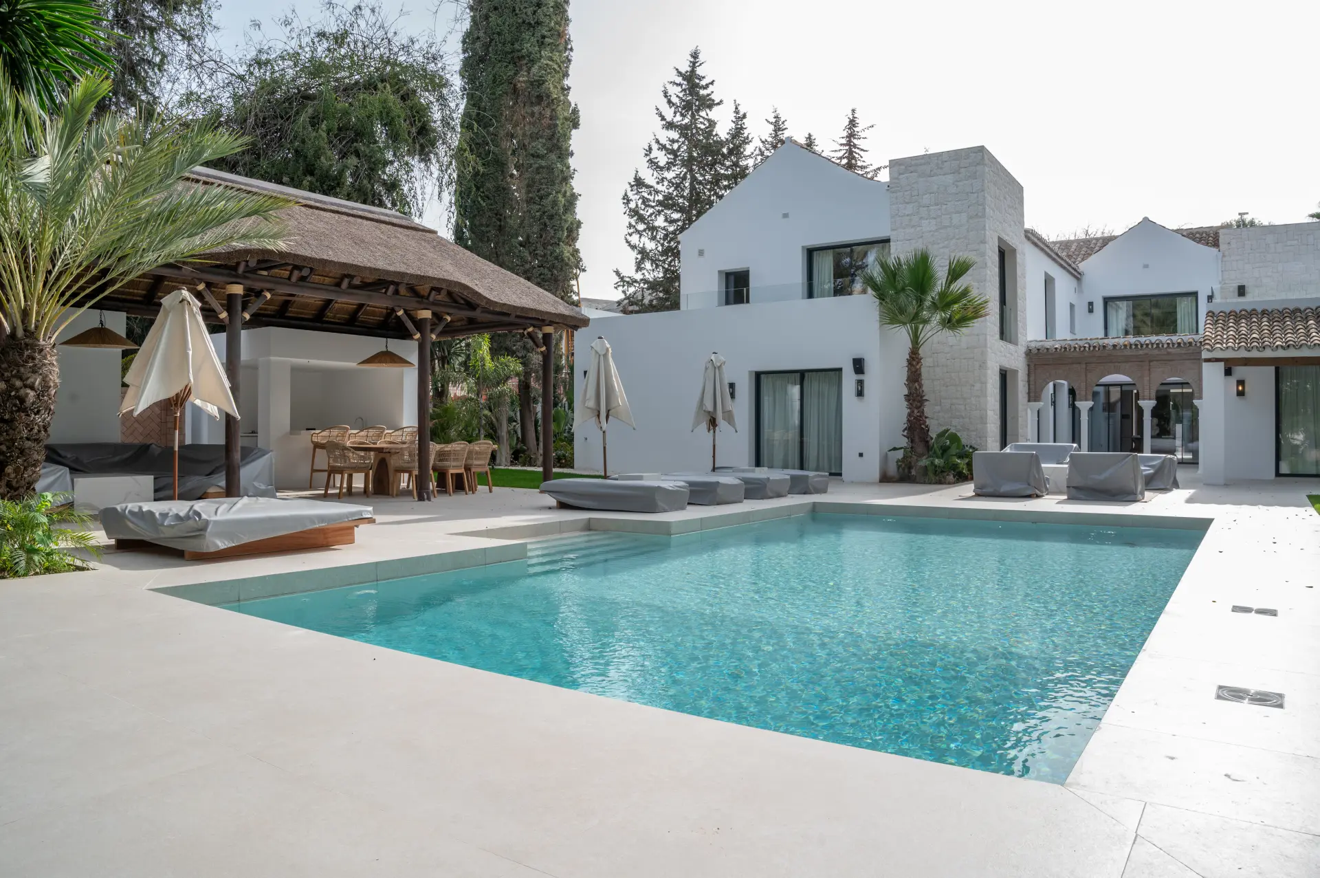 Situada en una exclusiva y tranquila zona de Nueva Andalucía, esta villa recientemente reformada representa la perfecta armonía entre la elegancia atemporal del estilo mediterráneo y la sofisticación del diseño contemporáneo. Ubicada sobre una amplia parcela de 2.563 m², esta propiedad redefine el concepto de vida de lujo en Marbella.